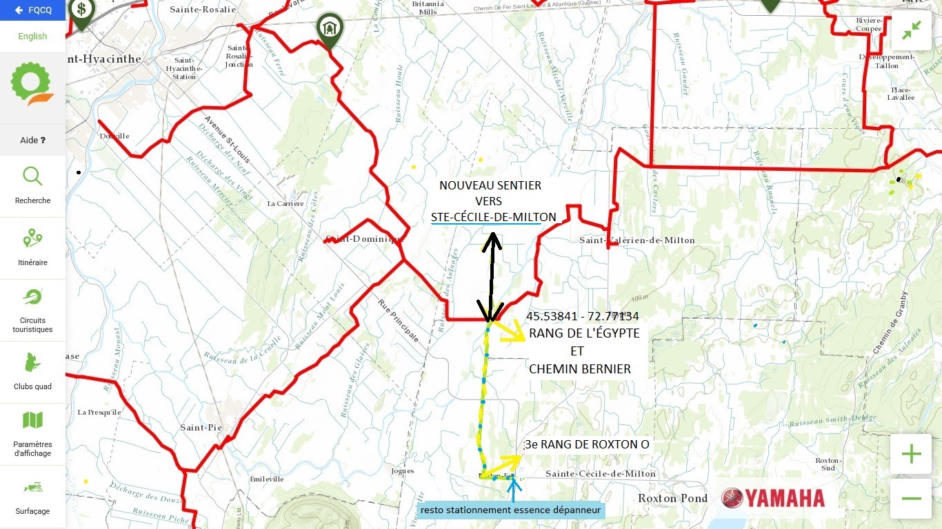 Nous avons développé un nouveau sentier qui part du rang de l’ Égypte à St-Valérien de Milton jusqu’à Ste-Cécile-de-Milton. Restaurant et station d’essence sont à votre service et un stationnement pour les débarcadères.
